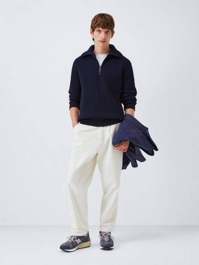Этот джемпер с застежкой на четверть молнии — универсальная вещь, сочетающая в себе стиль и комфорт. Изысканная жемчужная вязка и длинные рукава делают его идеальным выбором для создания изысканного, но в то же время непринужденного образа. Ребристые края создают структурированную отделку, а изящная эмблема в виде якоря внизу изделия добавляет нотку аутентичности.