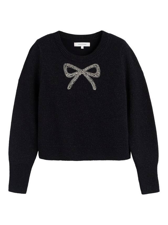 Немного блеска, много очарования. Этот классический свитер с круглым вырезом украшен бантом, расшитым кристаллами, — идеальный штрих элегантности для праздничного сезона.