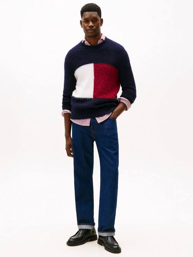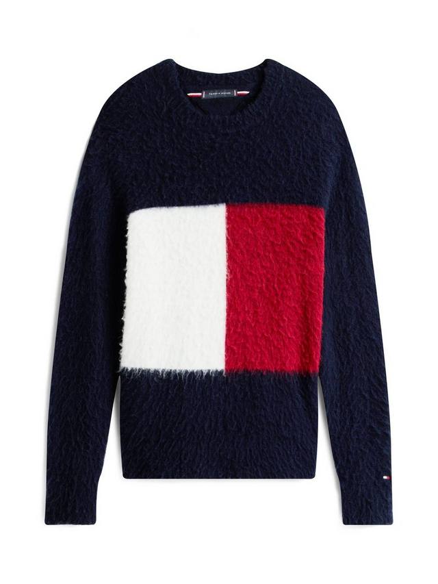 В этом джемпере вам будет комфортно весь день. Эластичная шерсть и альпака придают ему мягкую, слегка пушистую текстуру, а большой флаг подчеркивает фирменный стиль.