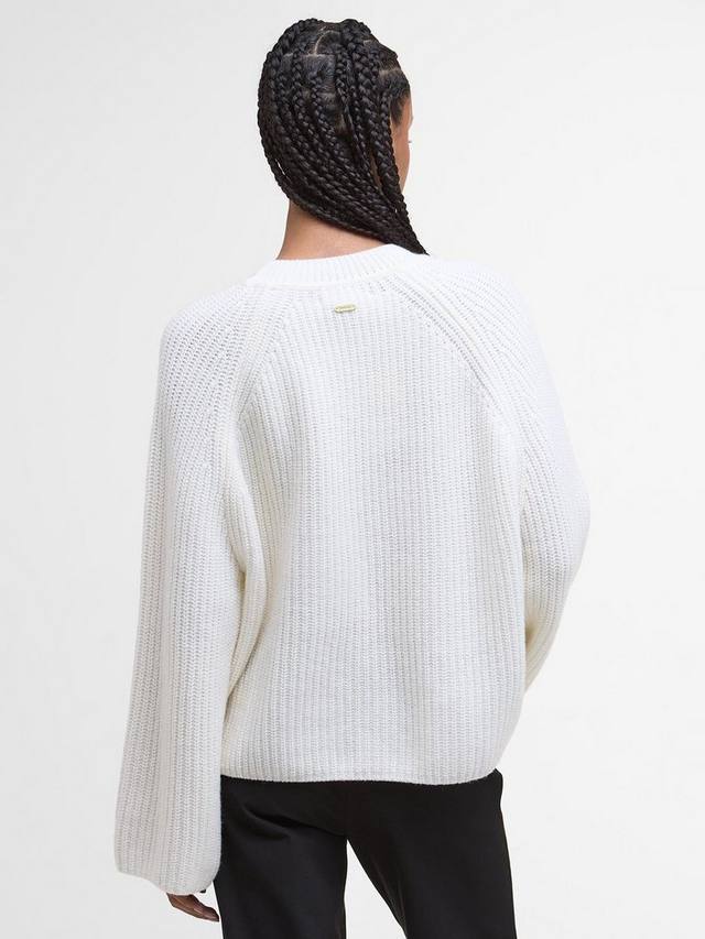 Джемпер Barbour Vera с круглым вырезом связан реглан резинкой в стиле рыбак с высоким содержанием шерсти, что делает его актуальным в этом сезоне в стиле рыбак. Он непринужденно сидит и идеально подходит для комплекта джинсы и красивый топ.