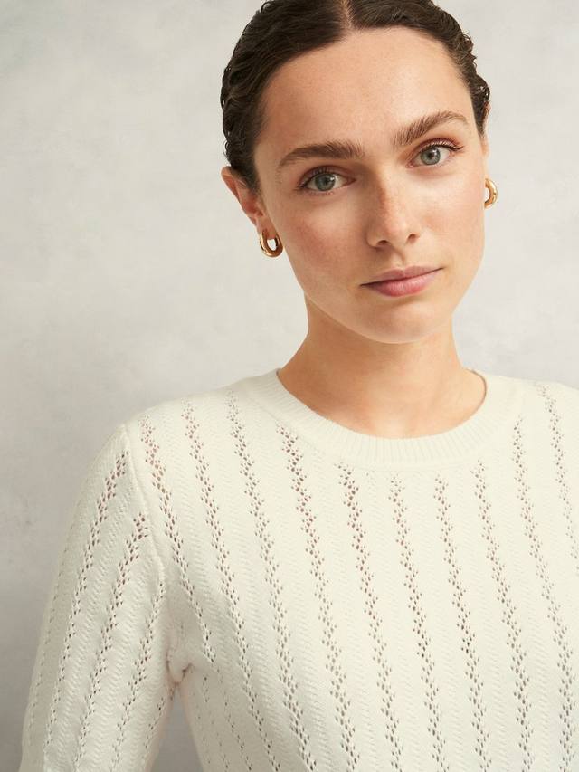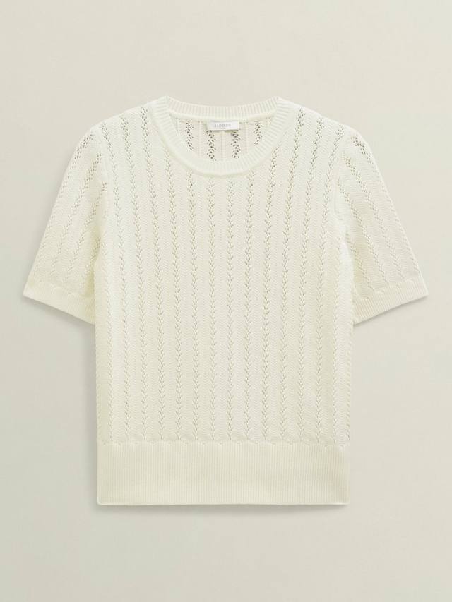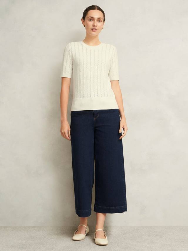 Топ Calla, который станет незаменимым элементом в любое время года, модернизирует ваш трикотажный комплект благодаря ажурной отделке поверх короткого рукава.