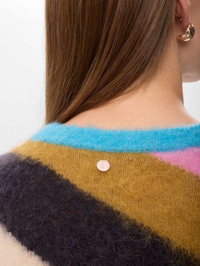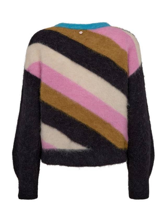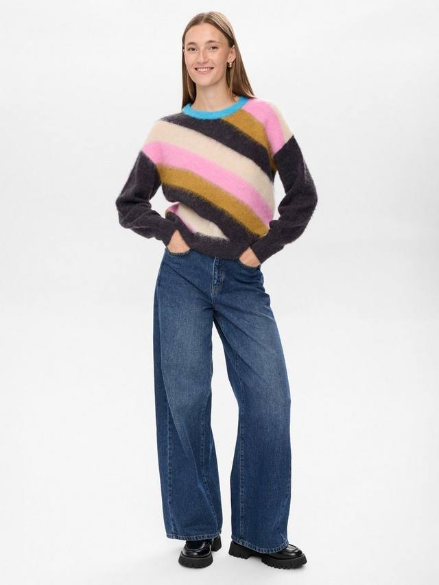 Этот свитер с круглым вырезом от Numph, выполненный из смеси шерсти альпаки и невероятно мягкий, с разноцветными диагональными полосками. Идеально подходит для многослойного ношения и легко впишется в любой повседневный образ.