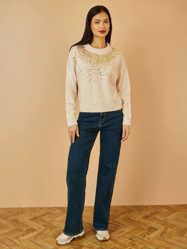Готовы к стильному празднику, не жертвуя комфортом. Высокий вырез горловины украшен красивыми пайетками. Мягкий трикотаж идеально подходит для повседневной носки в праздничный период. Свободный крой идеально сочетается с джинсами или брюками свободного кроя.