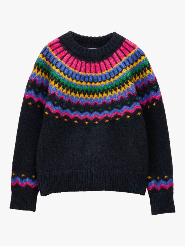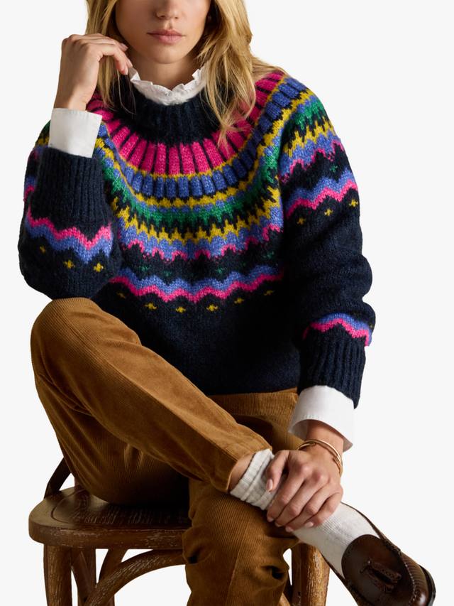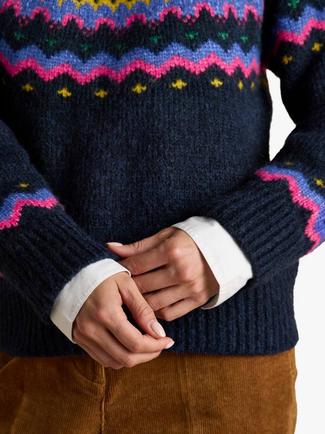 Этот вязаный джемпер с круглым вырезом и ярким узором Фэйр-айл стильно проведет вас через зиму.