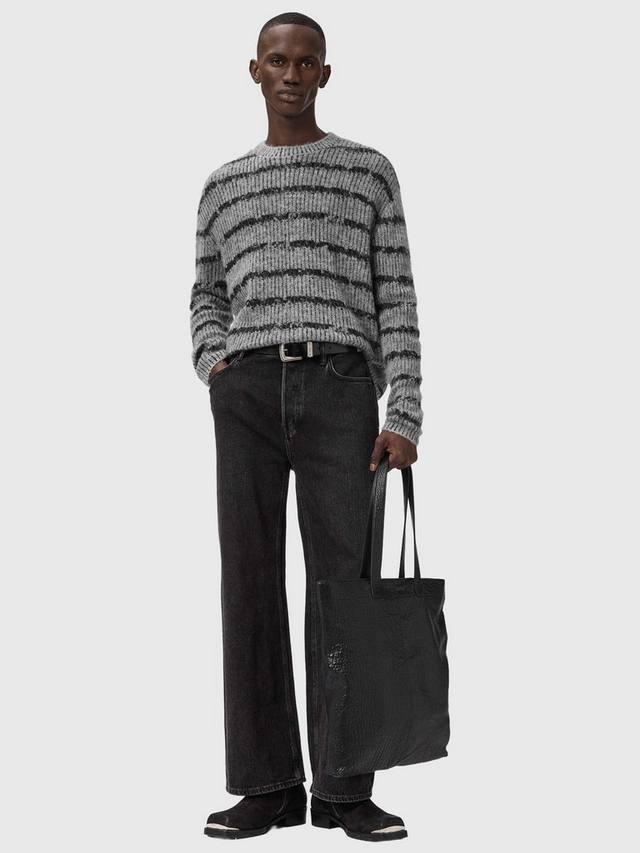 Этот шерстяной джемпер свободного кроя с полосатым узором обеспечит вам комфорт и тепло в напряженные дни. Круглый вырез горловины и длинные рукава делают его практичной повседневной вещью, идеально подходящей для активных будней или расслабленных вечеров.