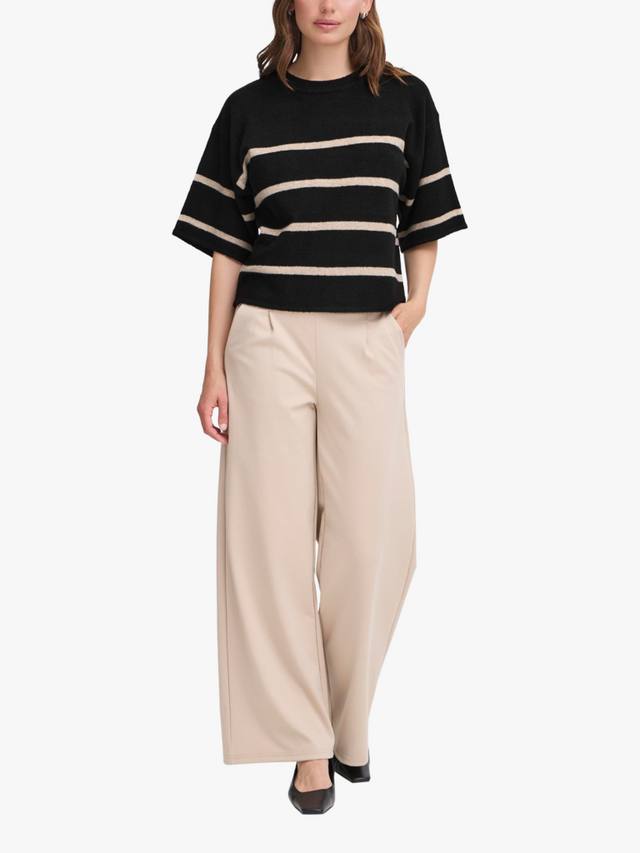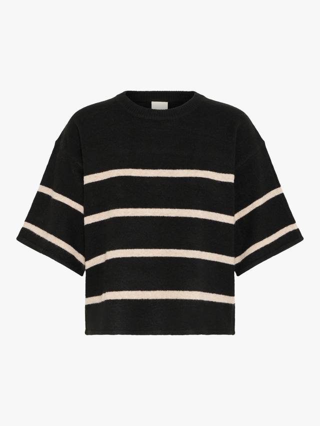 Этот полосатый джемпер средней плотности от ICHI с круглым вырезом и короткими рукавами дополнен шерстью для создания уютного образа.