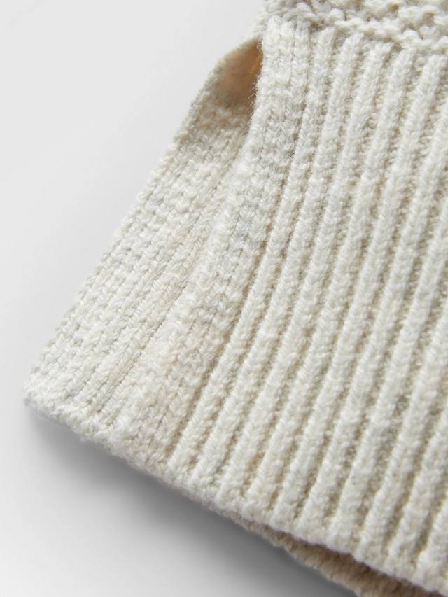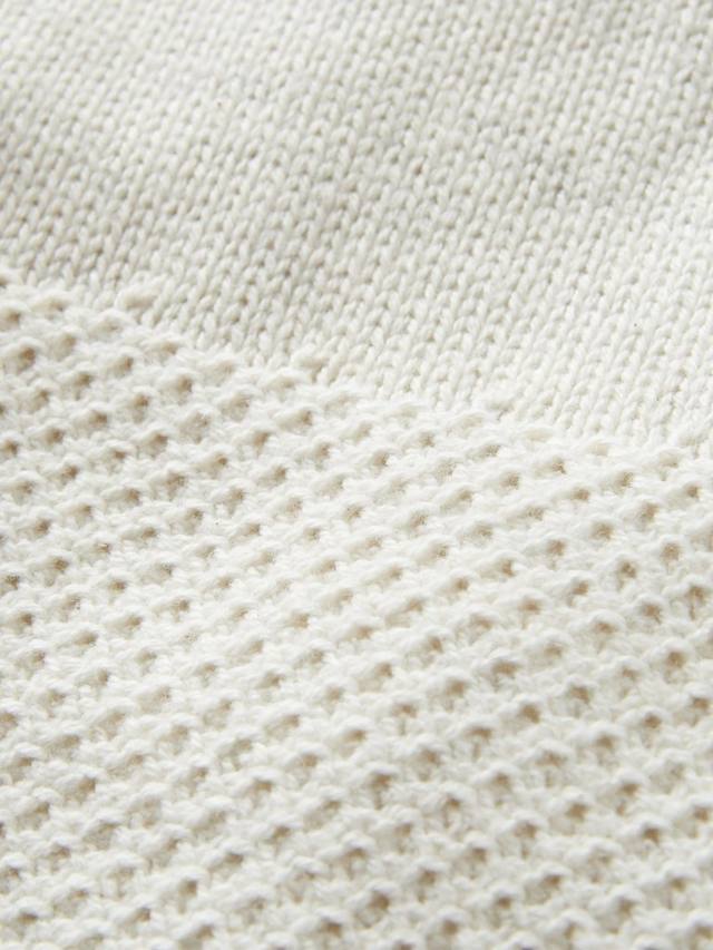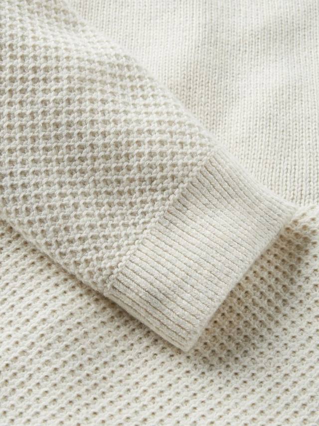 The Cove вдохновлен туманными днями, проведенными в поисках тихих прибрежных тропинок. Трикотаж средней плотности из мягкой шерстяной смеси, удобный для ношения в течение всего дня. Блочный узор из переработанного трикотажа с рукавами реглан.