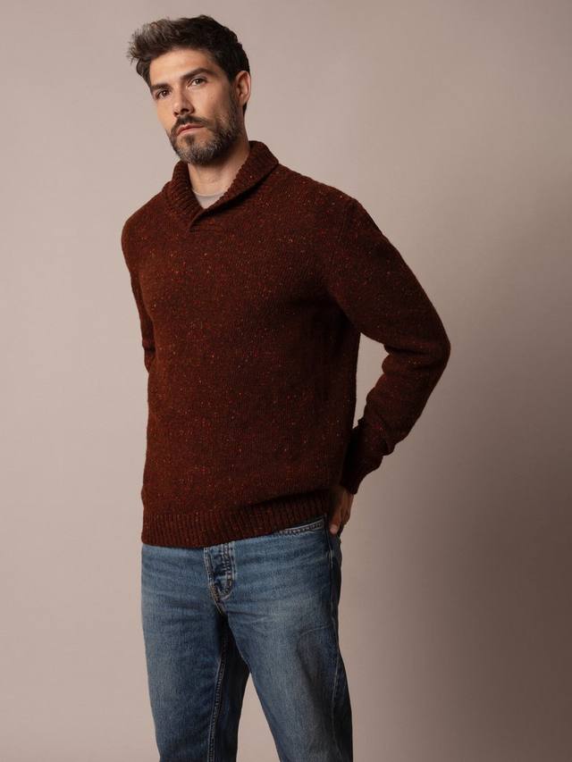 Этот свитер с шалевым воротником для уюта в прохладную погоду выполнен из натуральной донегольской шерсти, что придает ему характерные вкрапления, характерные для этой пряжи. Эта пряжа мягкая на ощупь, но не слишком объемная. Поэтому вы можете носить изделие в холодное время года или носить его просто в теплые дни.