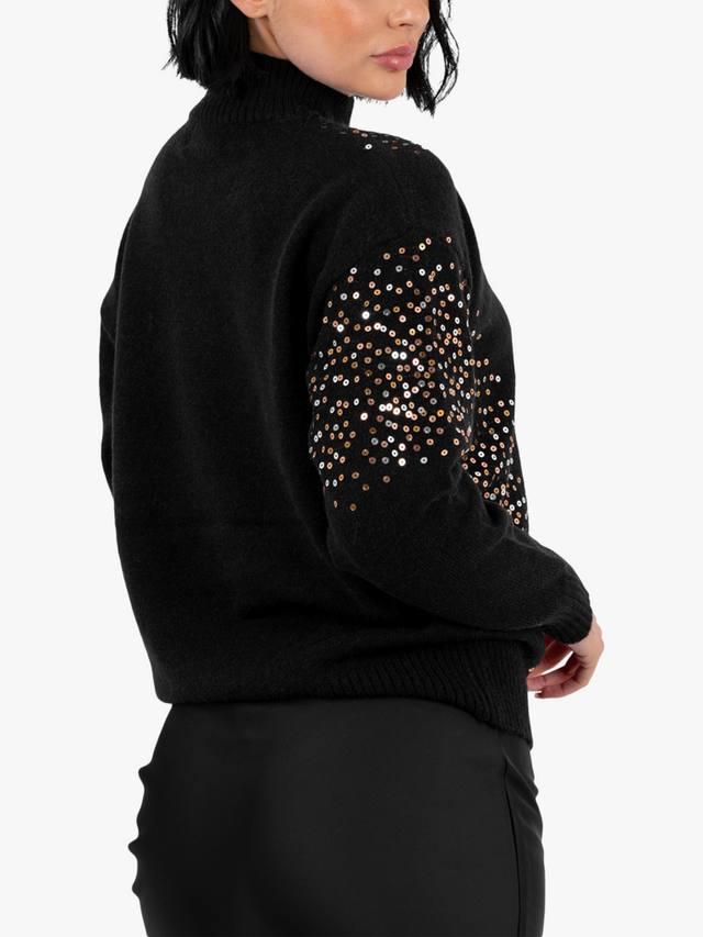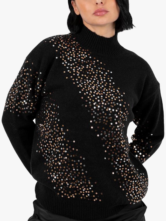 Добавьте немного блеска в ваши уютные образы! Этот джемпер с высоким ребристым вырезом и классической отделкой украшен мерцающей отделкой спереди и на длинных рукавах. Идеально подходит для вечерних посиделок с друзьями. Дополните этот джемпер джинсами и каблуками для создания шикарного вечернего образа.
