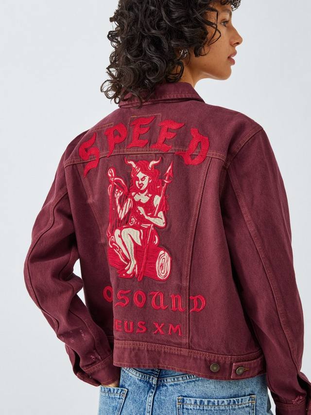 Куртка свободного кроя из перекрашенной хлопковой джинсовой ткани с интенсивной энзимной стиркой. Вышитый рисунок на спине, накладные карманы на груди, фирменная застежка на пуговицы спереди по центру и боковые регуляторы по подолу.
