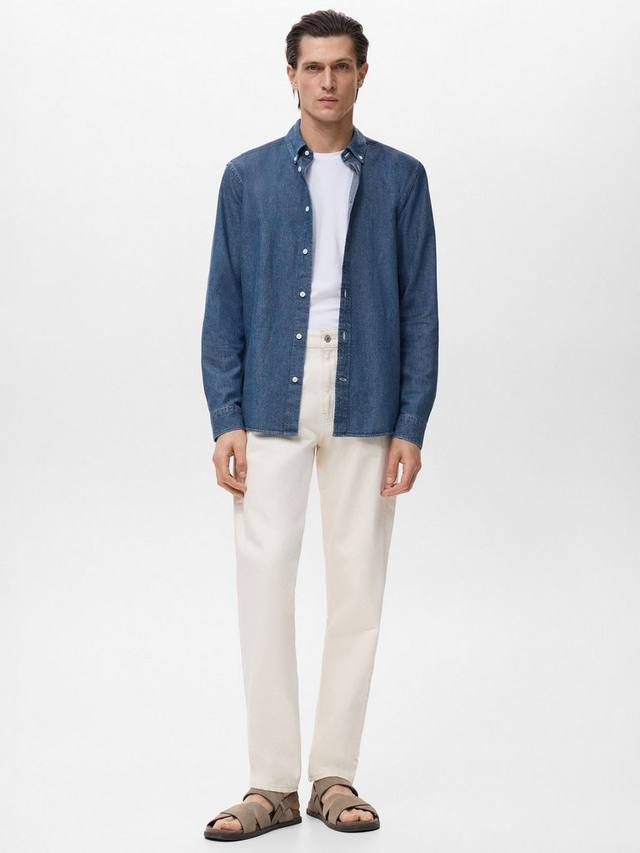 Эта рубашка от Mango выполнена из смеси с высоким содержанием хлопка, которая обеспечивает мягкость и максимальную прочность. Она лишена вычурных деталей и имеет свободный крой.