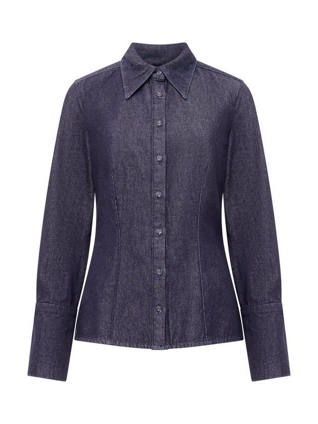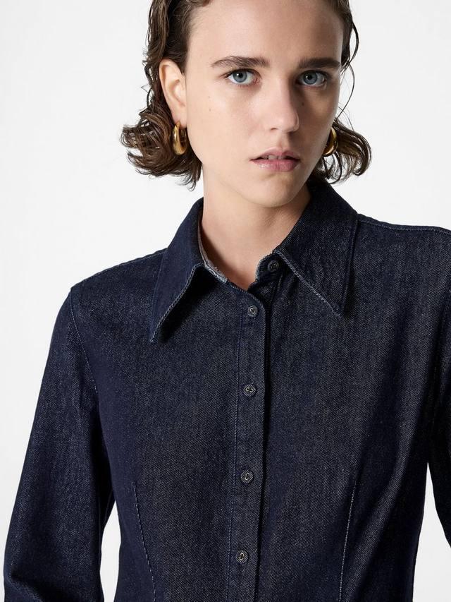 Элегантный и элегантный деним. Приталенная рубашка Fletcher Denim с длинным рукавом имеет структурированный силуэт, классический воротник и аккуратную строчку.