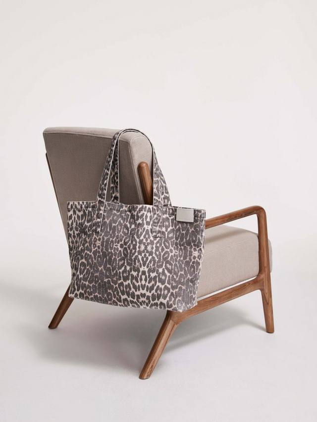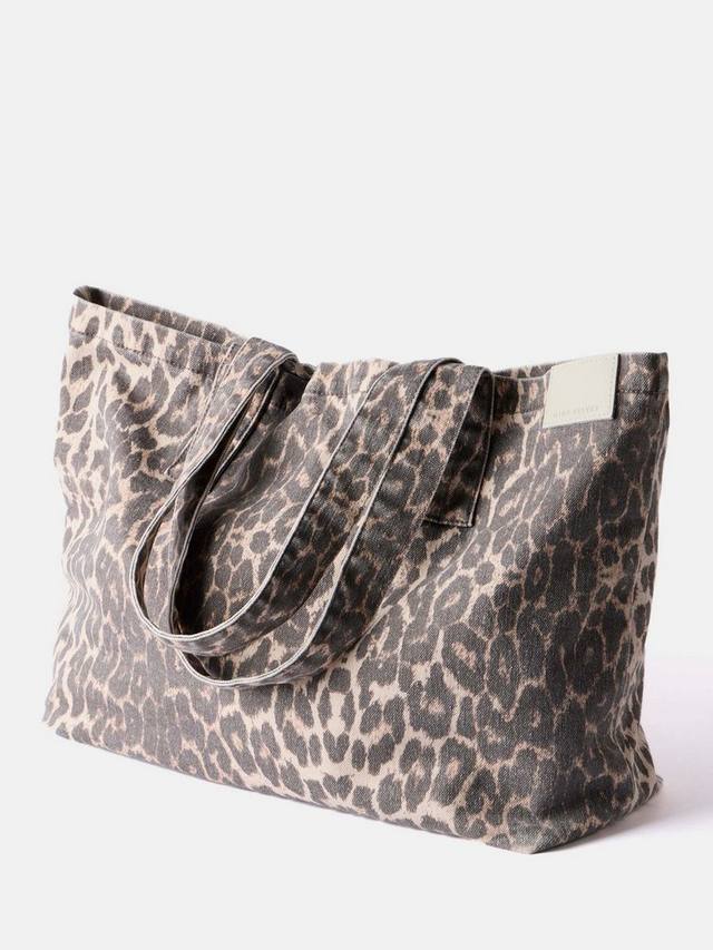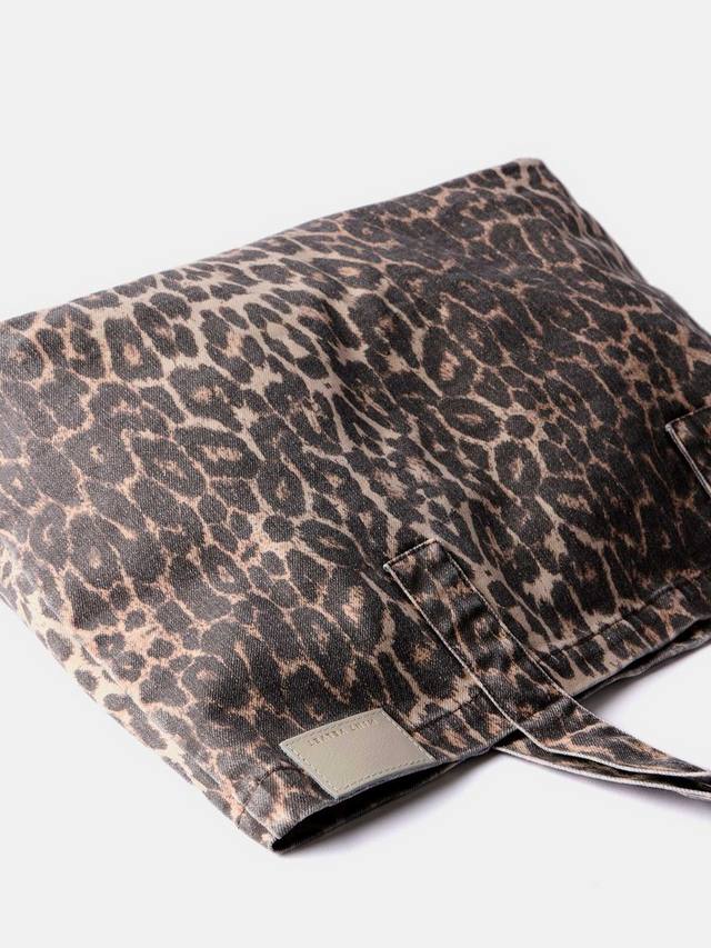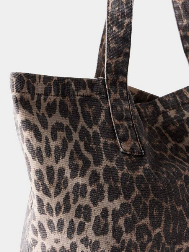 Сумка-шоппер с леопардовым принтом прямоугольной формы из джинсовой ткани. Дополнена длинными плечевыми ремнями и нашивкой с логотипом.