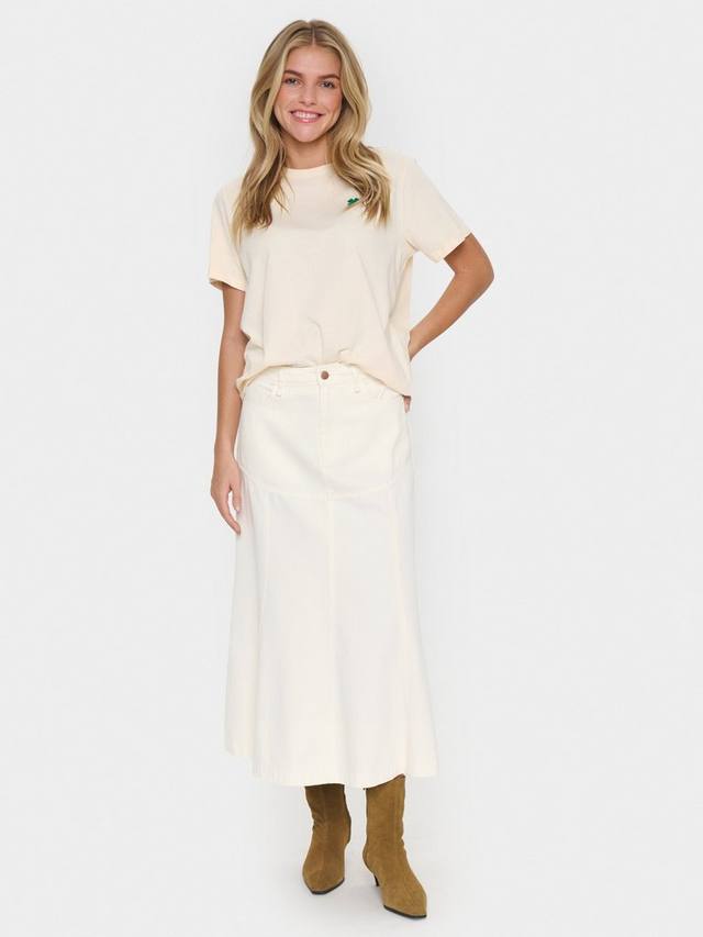 Юбка Joann – женственный джинсовый фасон, который отлично сочетается с любым верхом. Высокая талия, застежка на молнию и пуговицы, расклешенный крой. Юбка имеет кокетку ниже бедер и крой до середины икр, а также округлые передние карманы и накладные карманы сзади.