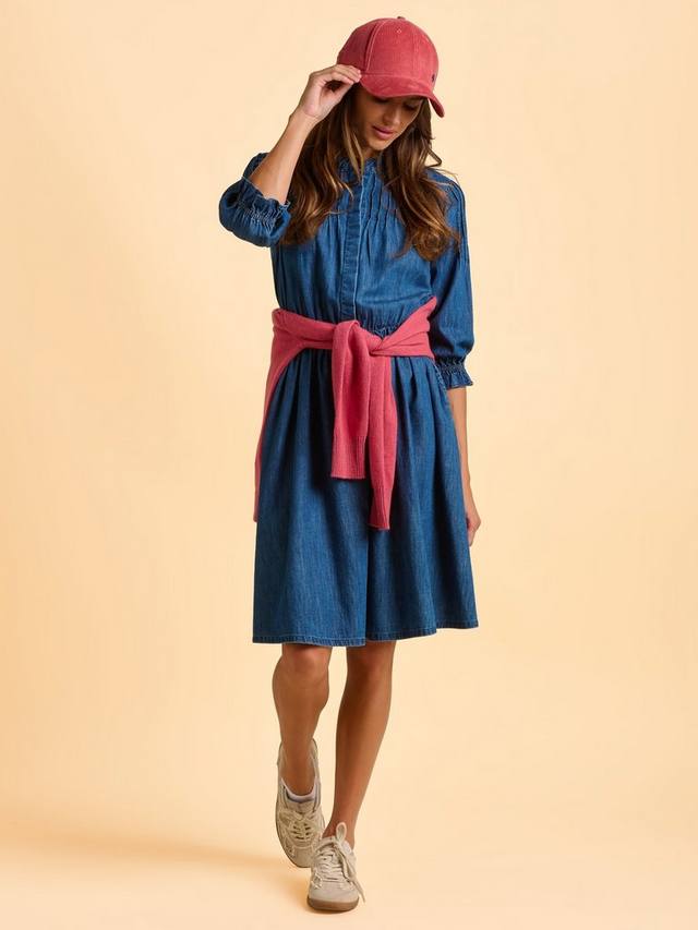 Джинсовое платье Icylyn с нотками западного очарования идеально подходит для повседневной носки. Платье изготовлено из 100% хлопка, имеет мягкие складки на груди и плечах, свободный круглый вырез горловины и манжеты с оборками, что придает ему утонченный женственный вид. Кроме того, кулиска на талии придает фигуре форму, не создавая ощущения излишней структурированности.