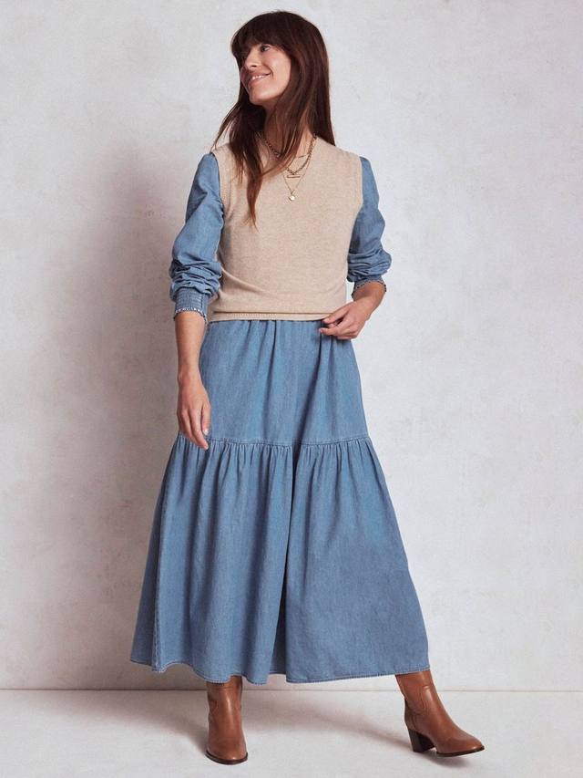 Классическое джинсовое платье подходит для любого сезона. Платье Cecily из 100% хлопка, с длинными рукавами и длиной миди — идеальный вариант, чтобы купить его прямо сейчас.