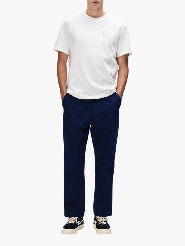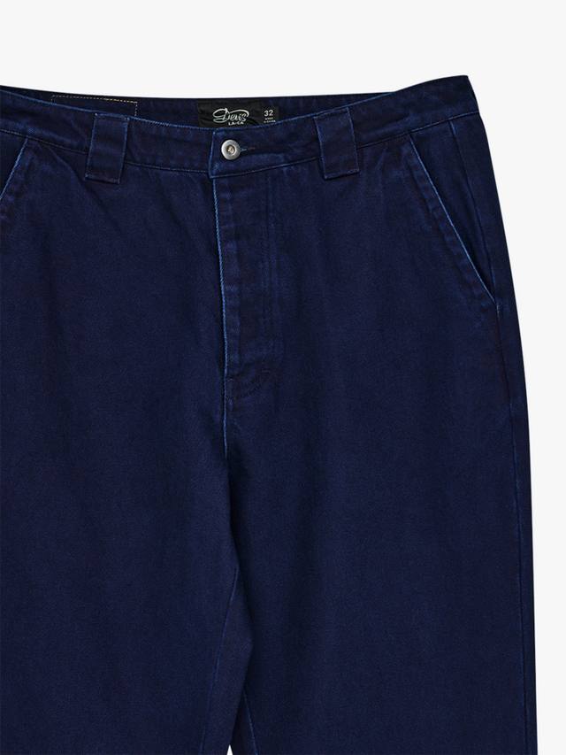 Изготовленные из хлопчатобумажной саржи, они оснащены легкодоступными прорезными карманами спереди и практичным накладным карманом сзади. Застёгиваются на талии на традиционную застёжку-пуговицу и гульфик.