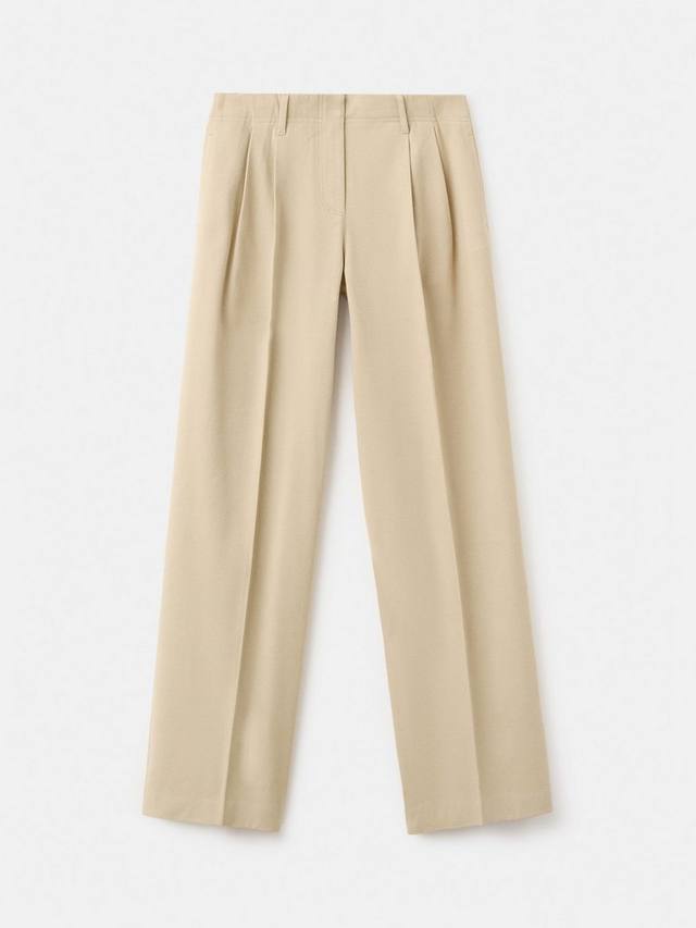 Пара плиссированных, практичных прямых брюк от Mango из хлопковой ткани. Они имеют среднюю посадку и застежку на молнию.