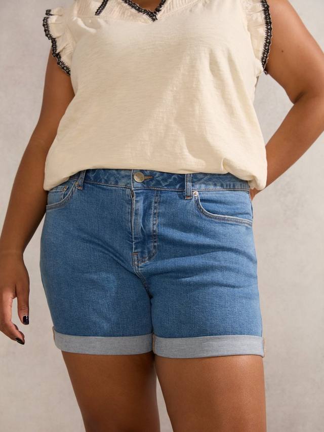 Эти джинсовые шорты классического синего цвета из смеси хлопка и комфортной эластичной ткани — незаменимая вещь в гардеробе, предлагающая вневременной стиль. Застежка на гульфике обеспечивает легкость надевания, шлевки для ремня обеспечивают гибкость, а пять карманов обеспечивают удобство и дополнительную аутентичность.