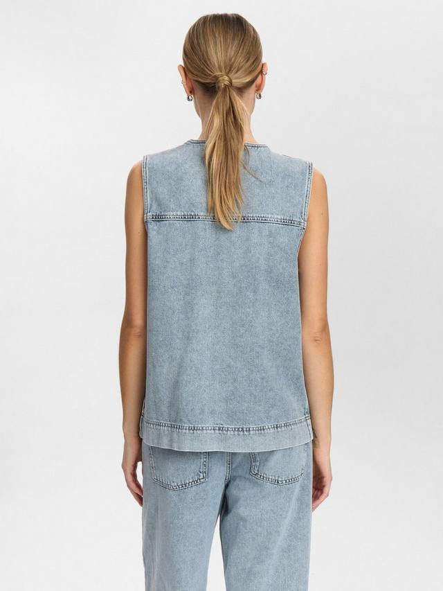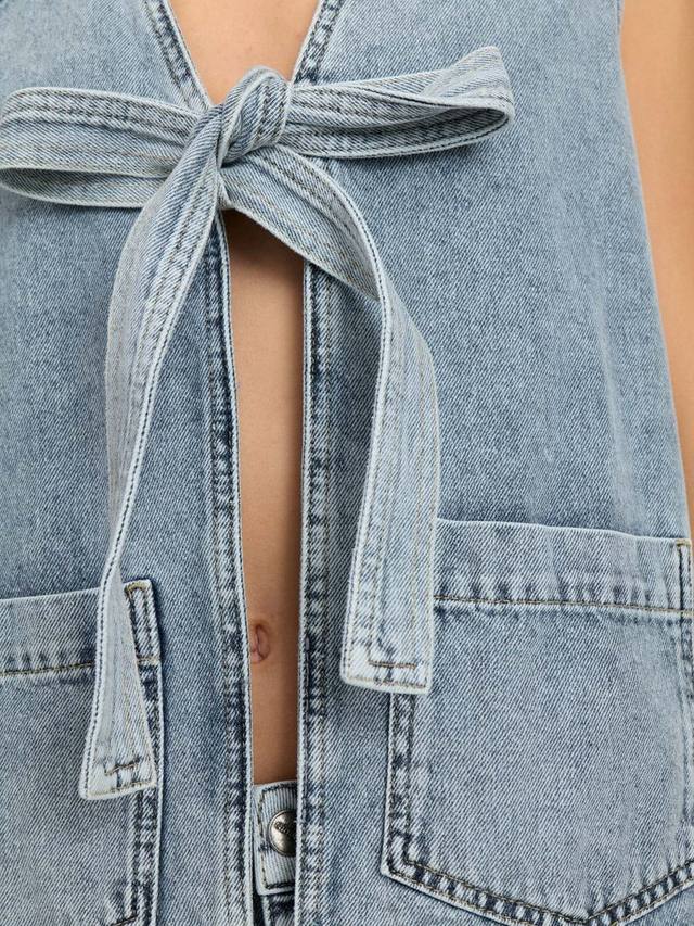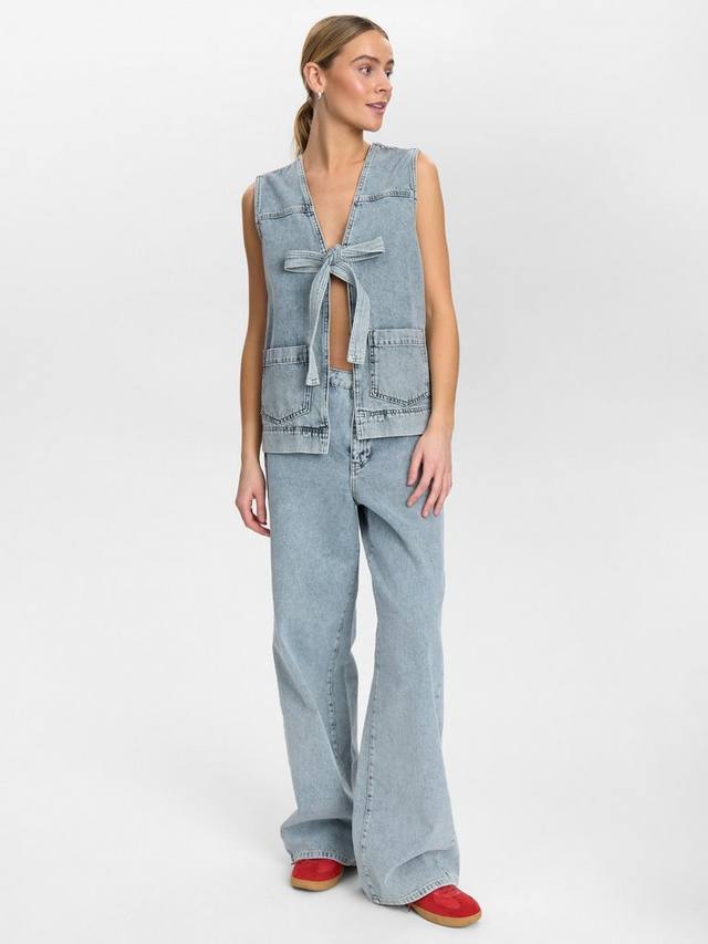 Джинсовый жилет Nubrooklyn с двумя карманами и женственным бантом спереди, который завязывается. Его можно носить с чем угодно, и даже отдельно, он будет актуален круглый год.