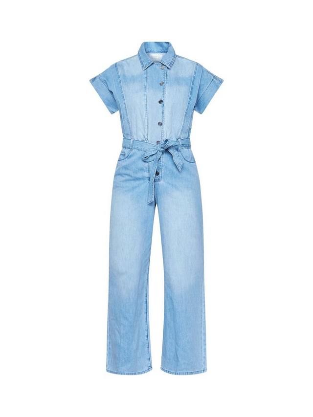 Этот удобный джинсовый комбинезон обеспечит вам комфорт и стильный вид. Прямой крой и застежка на пуговицы спереди подойдут к любому повседневному образу, добавив индивидуальности вашему образу. Регулируемый пояс на завязке и удобные карманы.