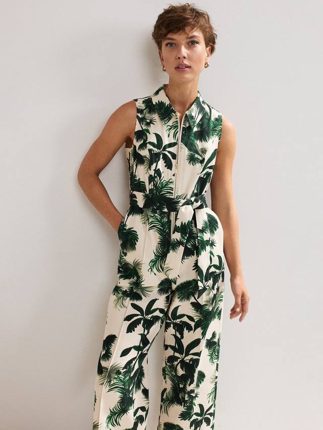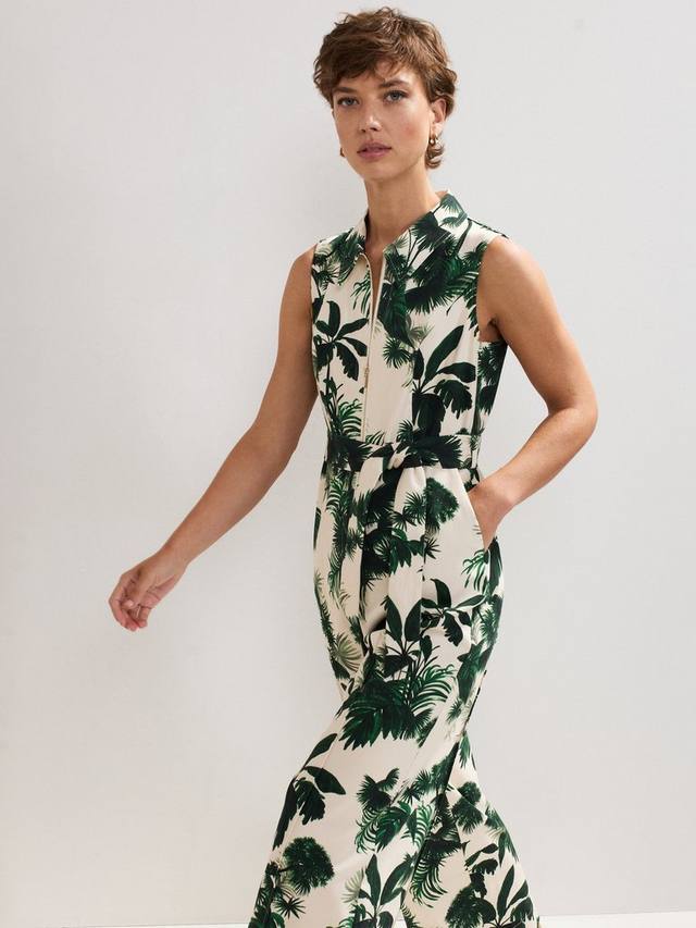 Джинсовый комбинезон Tullisa от Phase Eight, обновленный летним принтом пальм, отличается современной отделкой в виде молнии, структурированными передними швами и завязкой на талии для стильного силуэта. Безрукавный покрой с боковыми карманами.