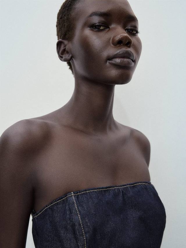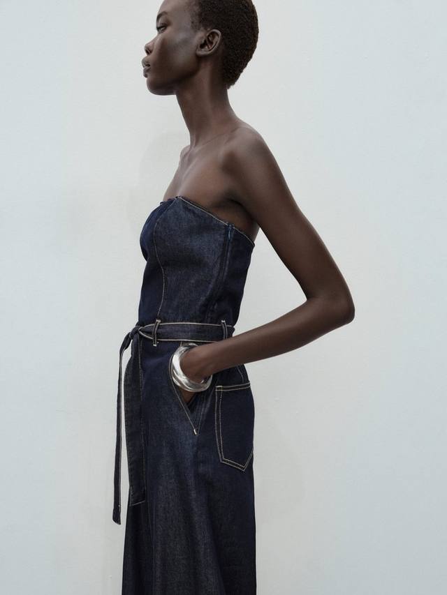 Этот комбинезон без рукавов от Mango с вырезом бандо имеет прямой крой и выполнен из прочного денима. Этот сдержанный и простой вариант идеально подходит для повседневных городских прогулок.