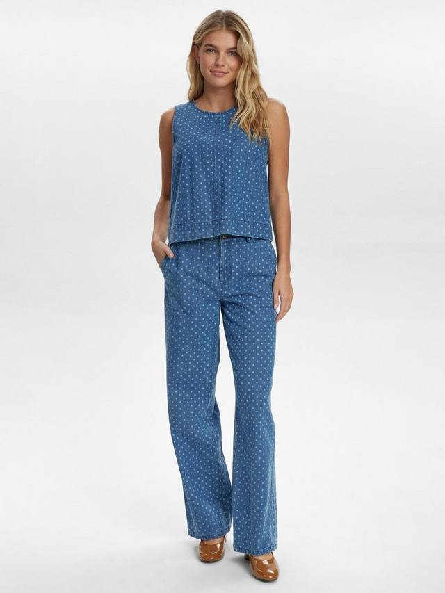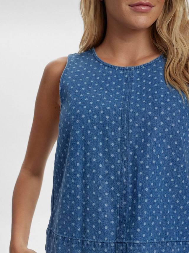 Этот топ без рукавов с круглым вырезом от Numph, выполненный из мягкого денима, украшен игривым и классическим принтом в горошек. Дополните его джинсами из той же ткани, чтобы создать современный взгляд на двойной деним.