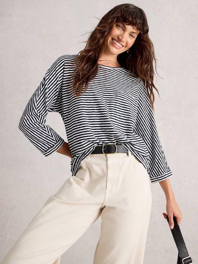 Полосатая футболка с длинным рукавом White Stuff из 100% хлопка, произведенного по принципам справедливой торговли, обеспечит игривый комфорт в напряженные дни. Классический круглый вырез горловины и свободный крой позволят вам быть готовыми к любым ситуациям, а мягкая ткань обеспечит вам комфорт, куда бы вы ни отправились.