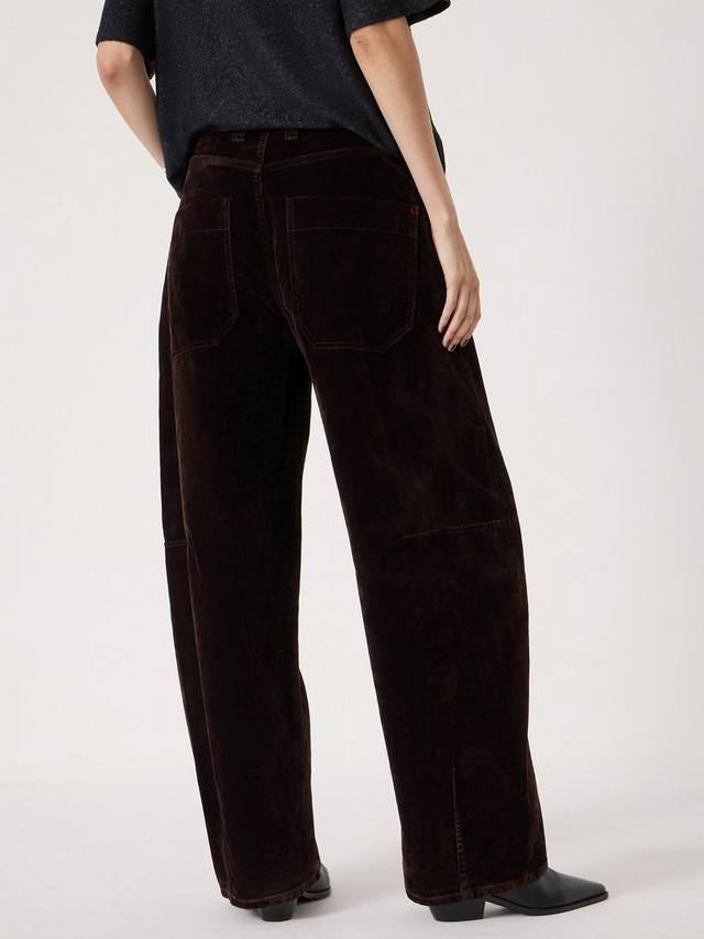 Современные джинсы-бочонки от HUSH из мягкой бархатистой хлопковой ткани. Удобная средняя посадка, застёжка на пуговицу и молнию обеспечивают стандартную длину.