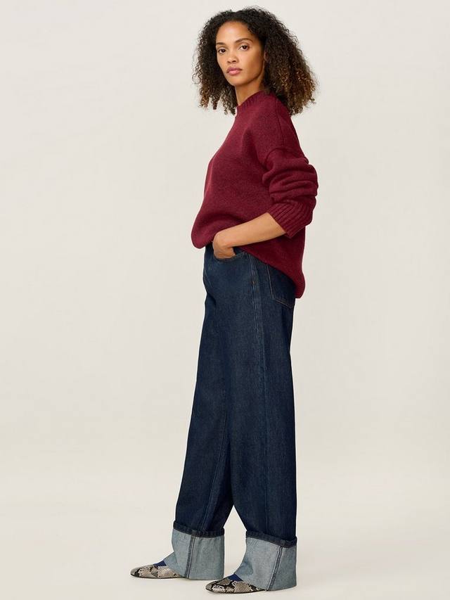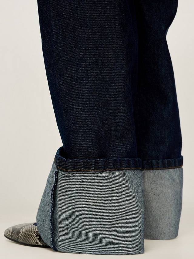 Bernie с высокой талией и прямыми штанинами дополнены широким подворотом. Чистые линии и минимальная детализация делают эту универсальную повседневную вещь.