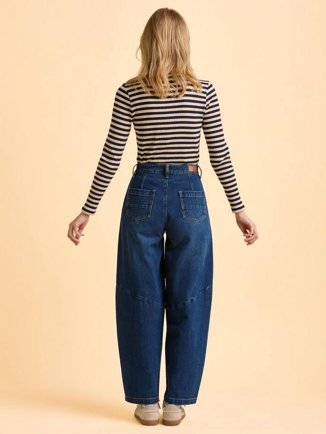 Джинсы-бочонки еще никогда не выглядели так хорошо. Благодаря складкам на талии и контрастной строчке, джинсы Bhodi сочетают в себе классические элементы и смелый крой, создавая силуэт песочные часы, который всегда готов к выходным. Это идеальные джинсы на осень в сочетании с классическими белыми кроссовками.