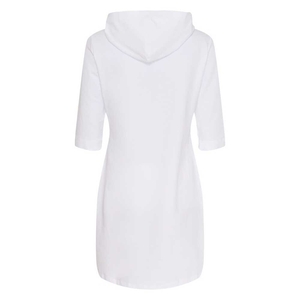 Платье-толстовка с капюшоном, принтом и вышивкой на груди.