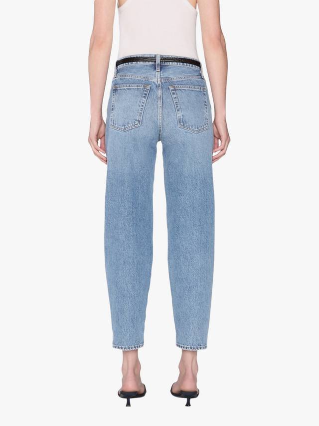 Эта модель из 100% хлопка, выполненная из плотной ткани, предлагает более сдержанный взгляд на моду на брюки-бочонки. Средняя талия и слегка изогнутый внешний шов, доходящий до щиколотки, идеально подходят для элегантных туфель на невысоком каблуке.