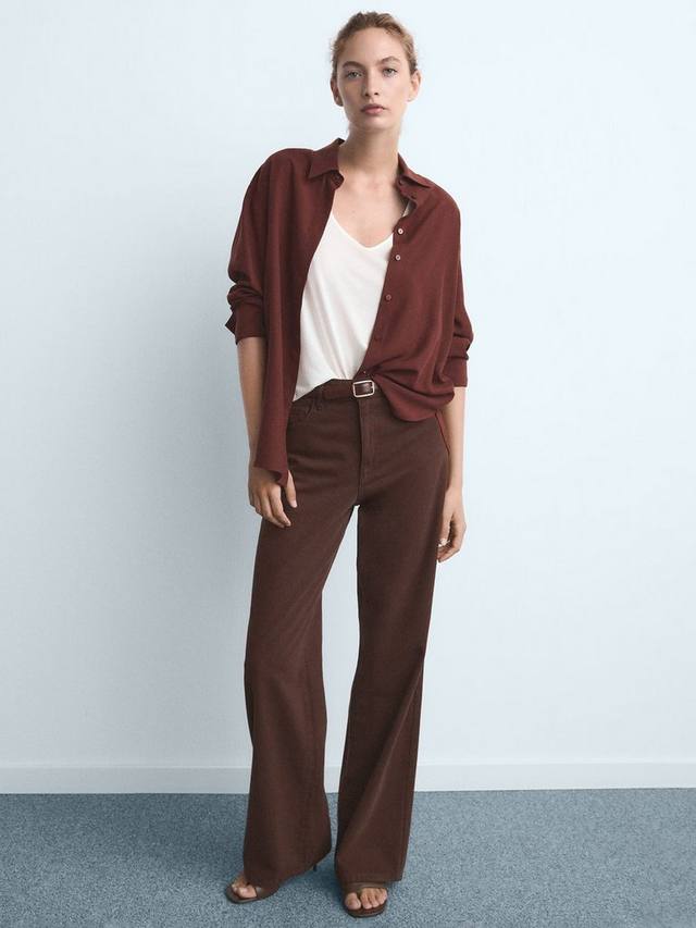 Свободные джинсы прямого кроя от Mango. Джинсы выполнены из денима с модной высокой посадкой и застежкой на молнию. Длина брюк стандартная.
