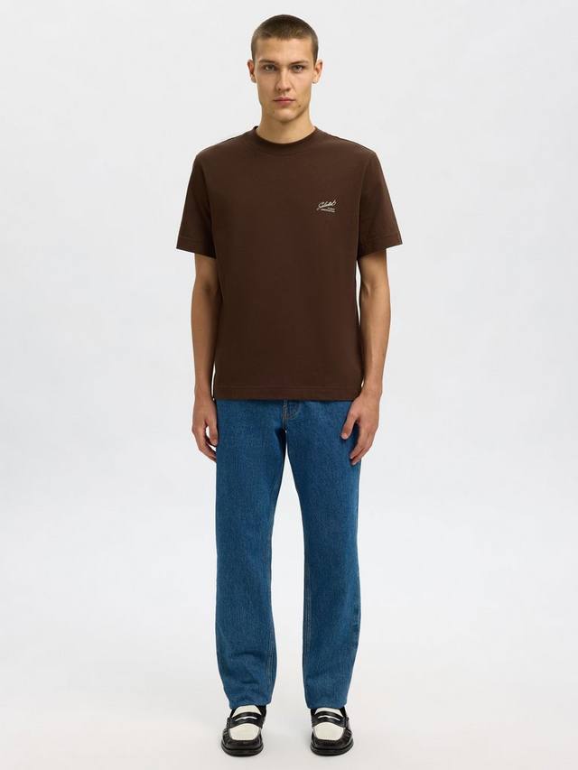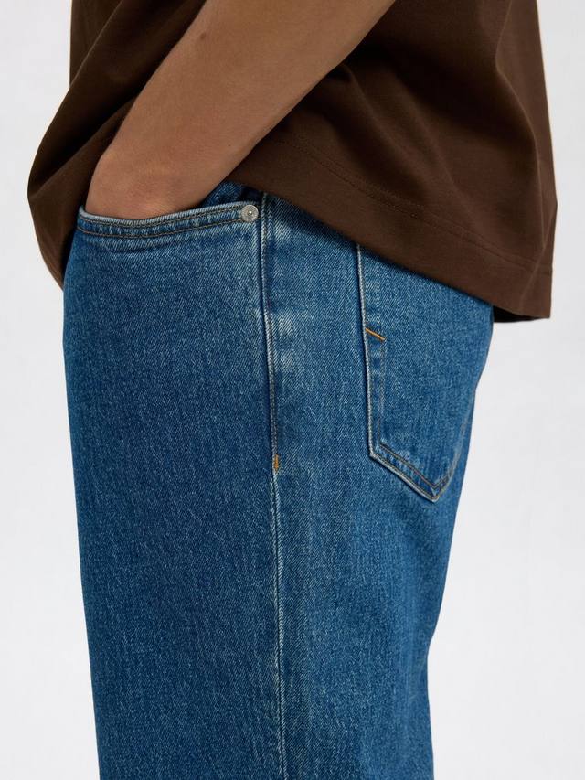 Пара зауженных джинсов от Selected в классическом стиле с пятью карманами и модной потертостью.