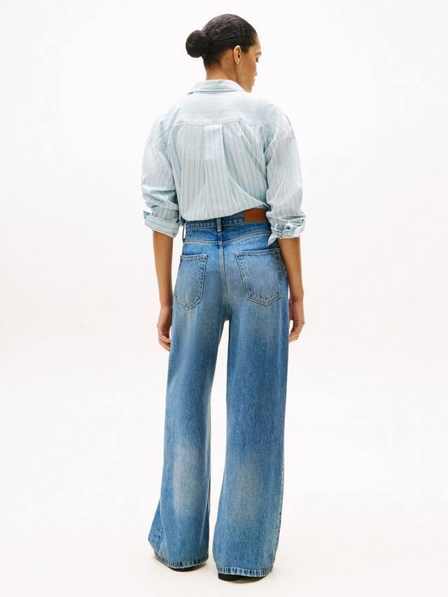 Джинсы суперширокого кроя от Tommy Hilfiger. Изготовлены из денима с высокой посадкой, застёжкой на пуговицы и молнию. Длина стандартная.