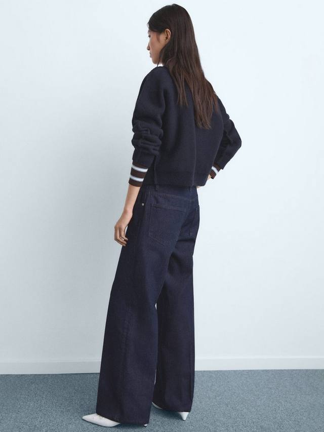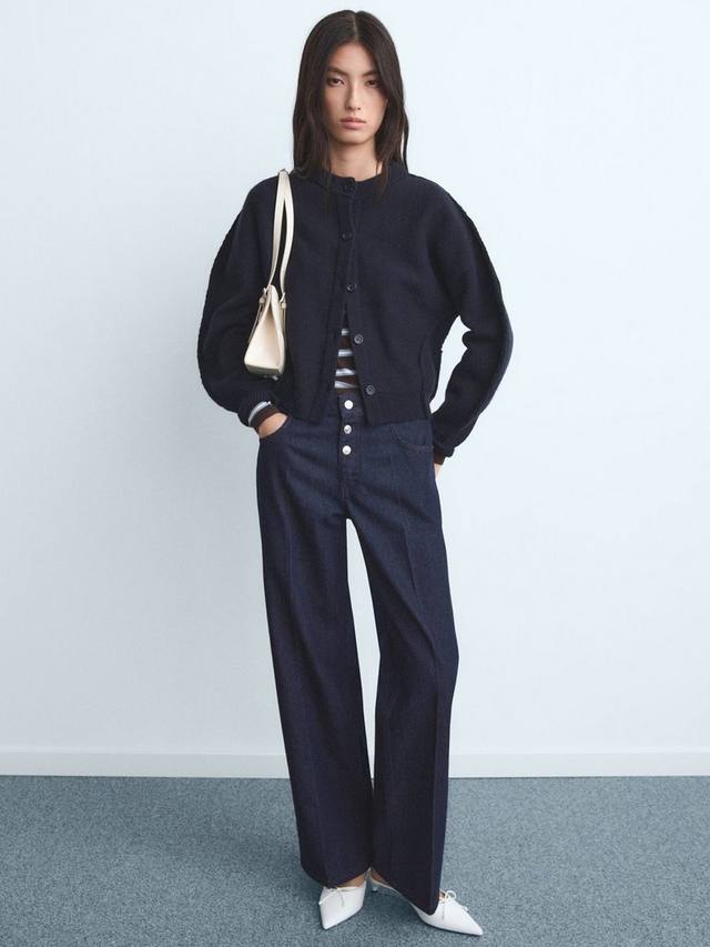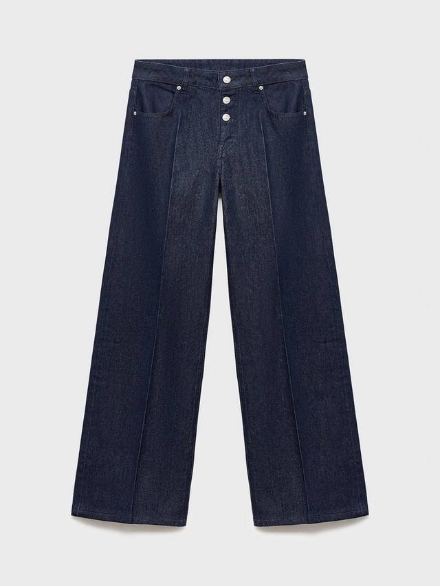 Пара свободных прямых джинсов от Mango с эффектной отделкой в виде пуговиц. Джинсы выполнены из денима с низкой посадкой, застежкой на молнию и накладными карманами.