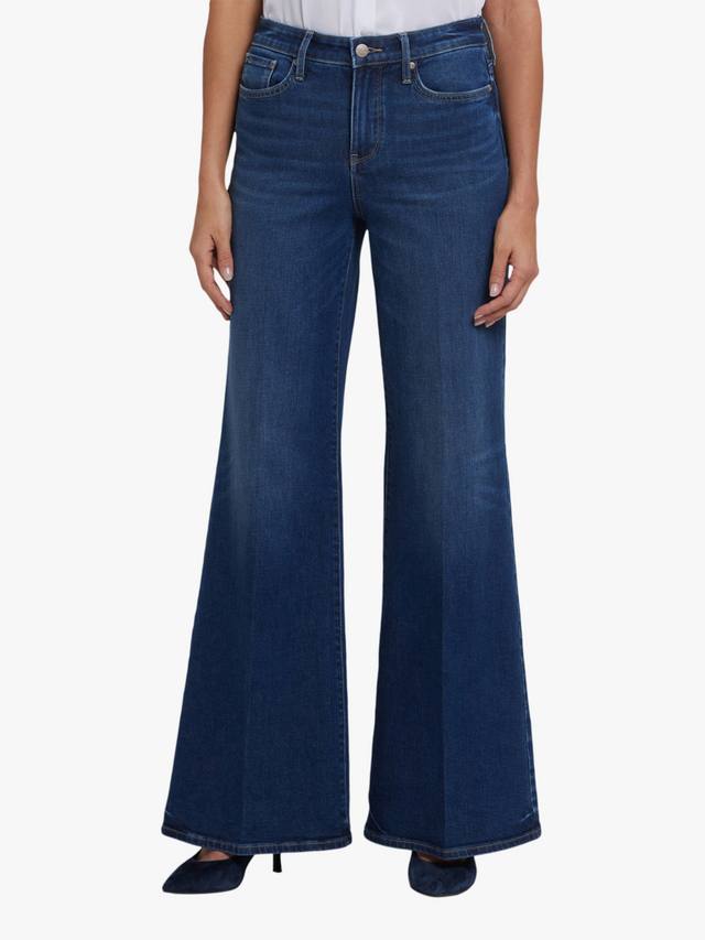Джинсы Mia Palazzo от NYDJ создают смелый и воздушный образ благодаря супер-расклешенным брючинам. Высокая посадка, облегающая бедра и ягодицы, дополнены стрелками по центру штанины. Технология Lift Tuck использует фирменную утягивающую вставку с запатентованным крест-накрест дизайном, которая формирует и поддерживает ваши изгибы, создавая всегда элегантный силуэт. Модель с пятью карманами и застежкой на молнию и пуговицы.