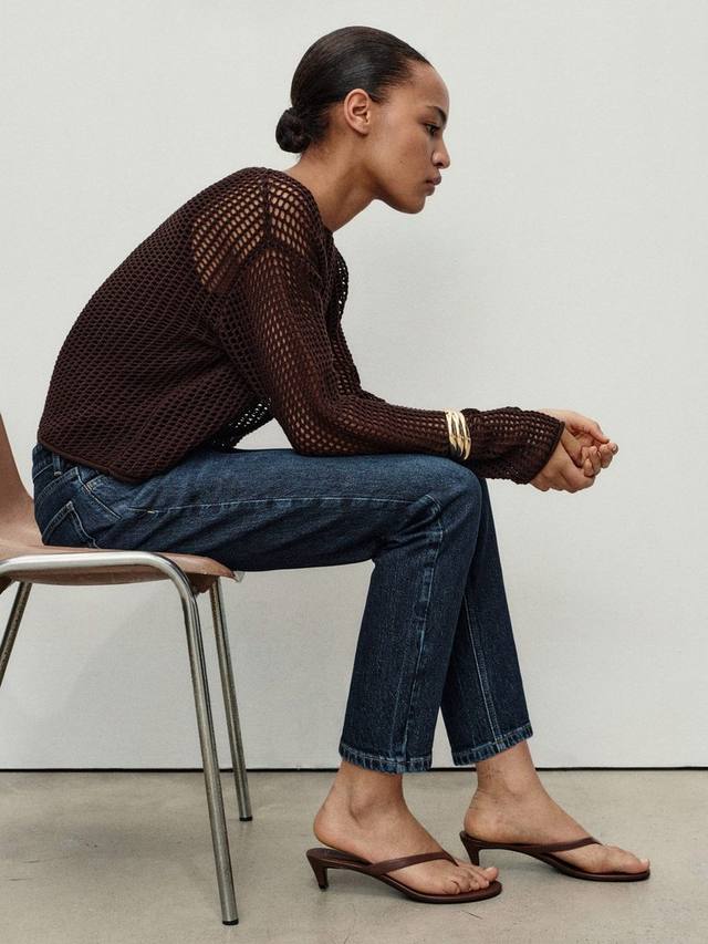 Зауженные джинсы mom от Mango. Изготовлены из мягкого денима со средней посадкой и застежкой-молнией. Укорочены до щиколотки.