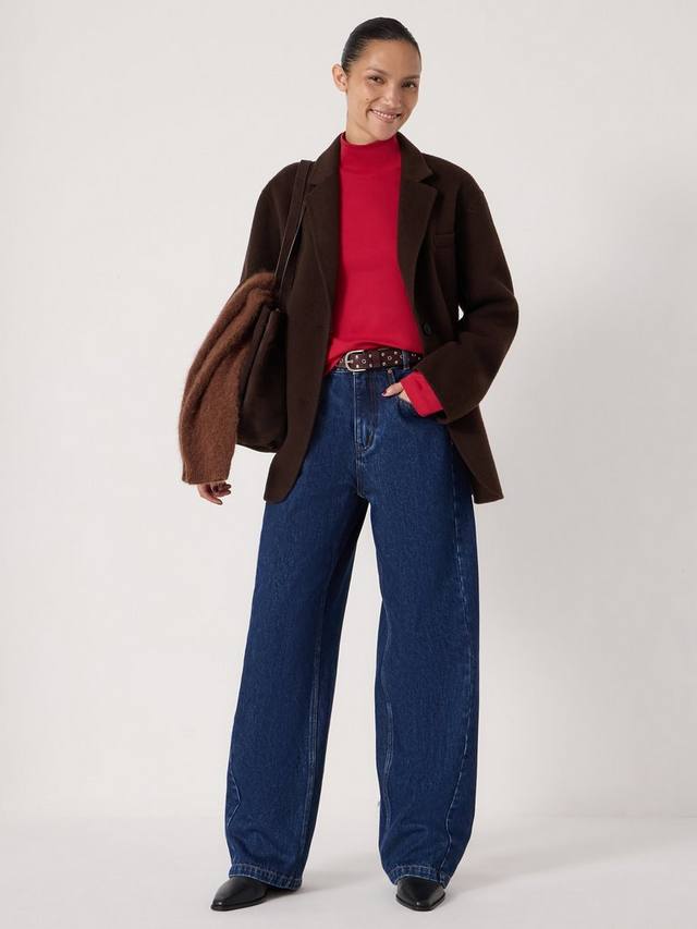 Широкие, закругленные джинсы-бочонки от HUSH. Изготовлены из чистого хлопка, имеют среднюю посадку и застежку на молнию и пуговицу. Удлинённый нижний край.
