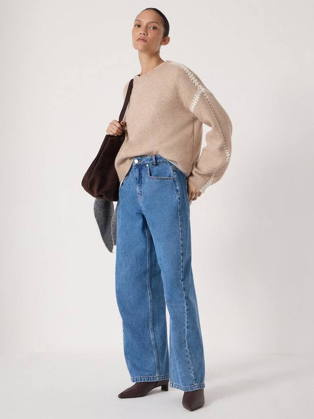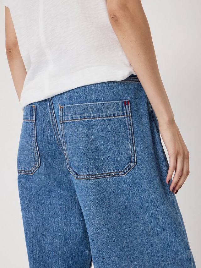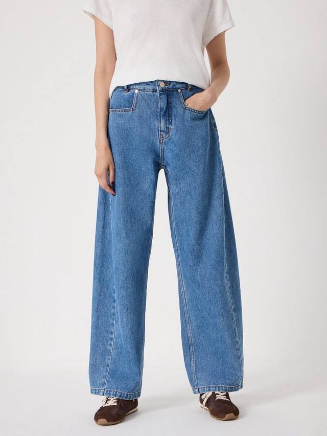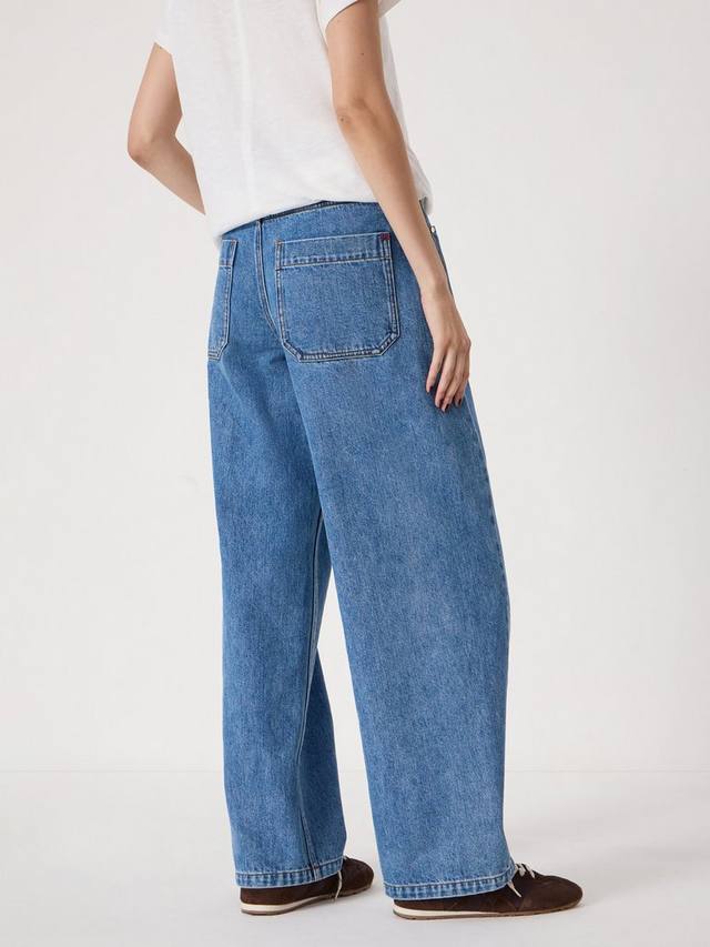 Широкие, закругленные джинсы-бочонки от HUSH. Изготовлены из чистого хлопка, имеют среднюю посадку и застежку на молнию и пуговицу. Удлинённый нижний край.