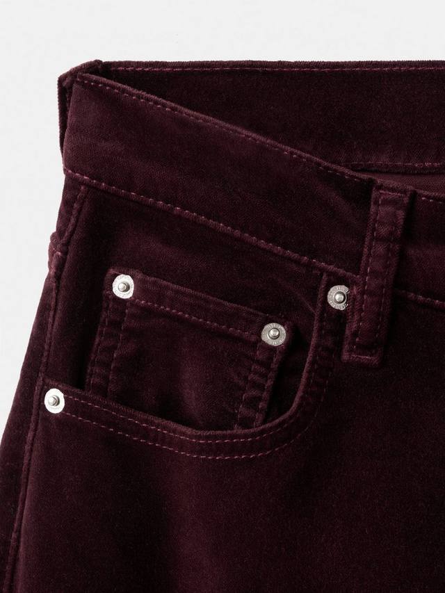 Эти джинсы средней посадки из мягкого бархата имеют классический пятикарманный крой со шлевками для ремня и застежкой на молнию на пуговицах. Широкий крой.