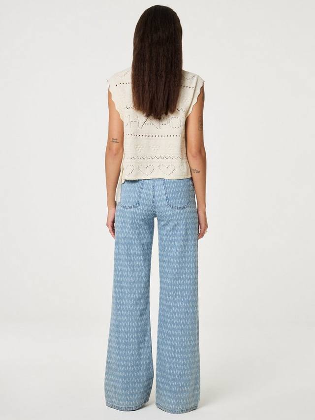 Эти светло-голубые джинсы широкого кроя украшены нежным принтом из белых полукругов по всей поверхности. Изготовленные из 100% органического хлопка, они обеспечивают комфорт и оригинальный вид – идеально подходят для стильного повседневного образа.