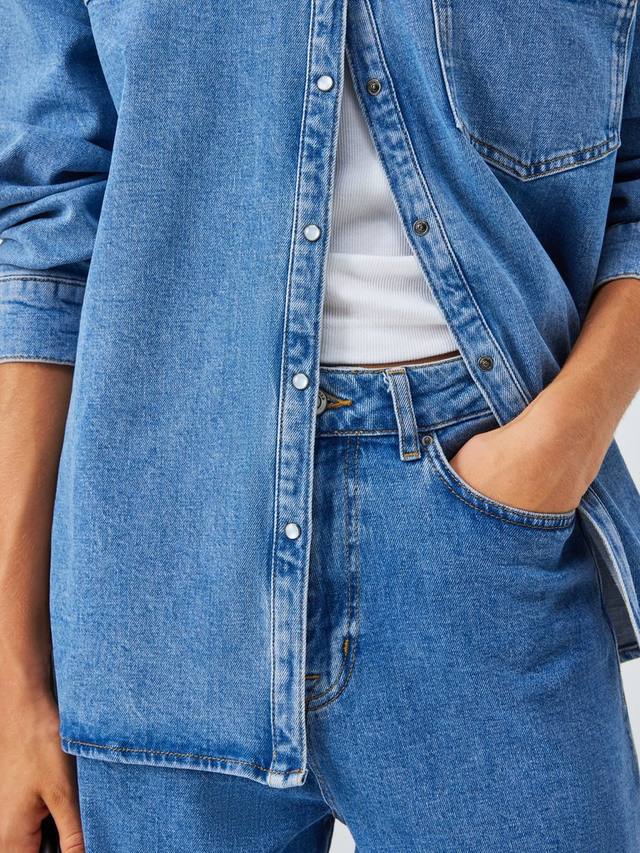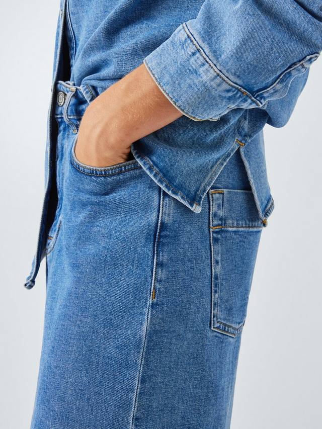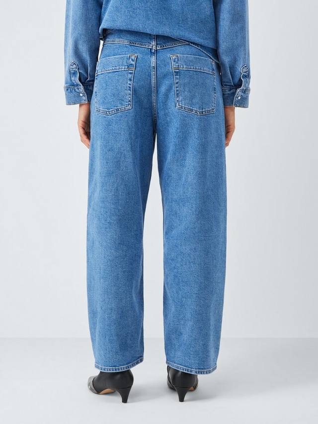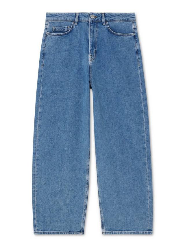 Классические джинсы с пятью карманами, свободного кроя, прямыми штанинами, укороченные. Изготовлены из эластичной ткани для комфортной носки.