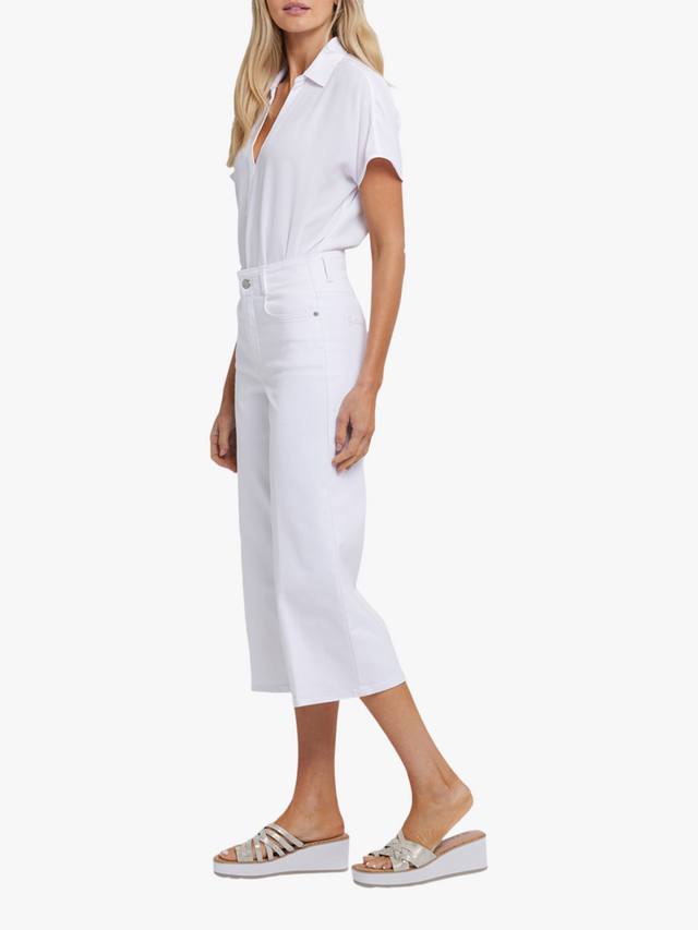 Большая ширина брючин придаёт джинсам-капри Brigitte Wide Leg с высокой талией от NYDJ эффектный вид, а облегающий крой на талии и бёдрах подчёркивает естественный силуэт. Технология Lift Tuck использует фирменную утягивающую вставку с запатентованным перекрёстным кроем, которая формирует и поддерживает изгибы тела, обеспечивая более плавную посадку спереди и приподнимая сзади. Модель с пятью карманами, прорезным карманом для монет и застежкой на молнию и пуговицу.