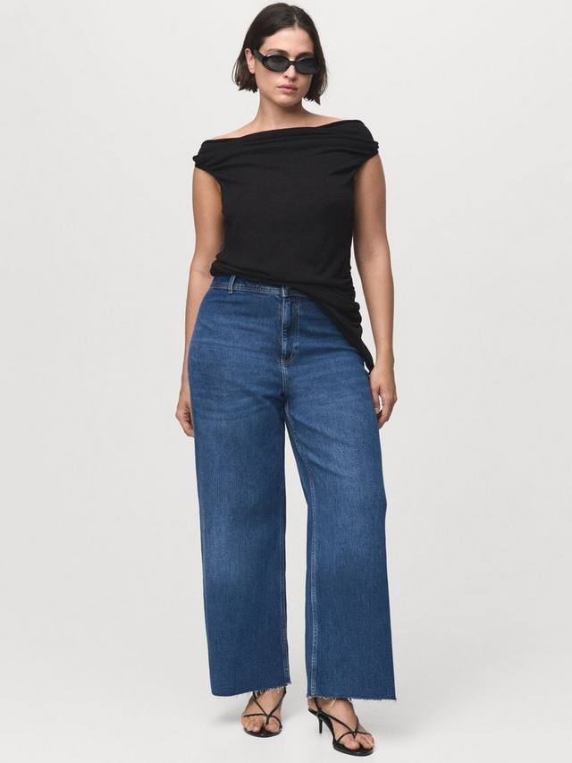 Джинсы Mango Super Wide. Изготовлены из денима с высокой посадкой и застежкой-молнией. Длина доходит до стандартной.
