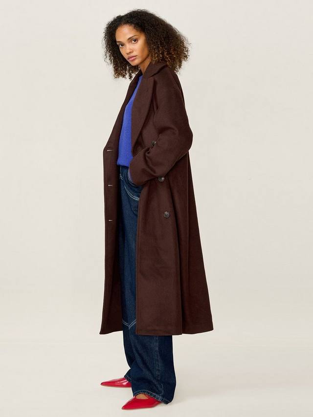 Tina — ваш идеальный выбор для создания многослойной верхней одежды. Это длинное пальто свободного кроя из тёплой смесовой ткани с классическими лацканами и свободным силуэтом создаёт лёгкий и непринуждённый образ. Независимо от того, надето ли оно поверх повседневной джинсовой ткани или в сочетании со строгими фасонами, Tina мгновенно добавит изысканности и тепла вашему зимнему гардеробу.