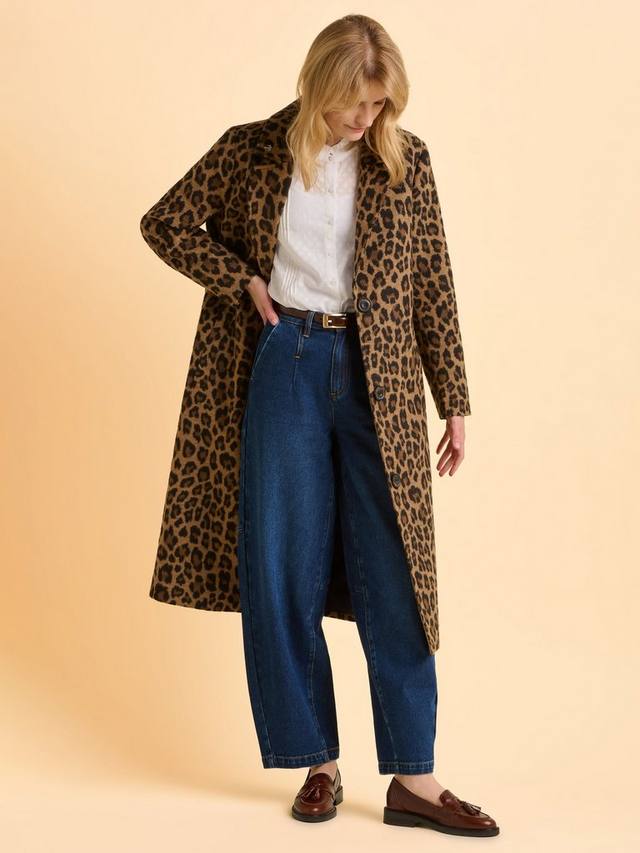 Отделка воротником и анималистичный принт, отвечающий последним тенденциям моды, делают это пальто функциональным и стильным выбором, который также защитит вас от непогоды.