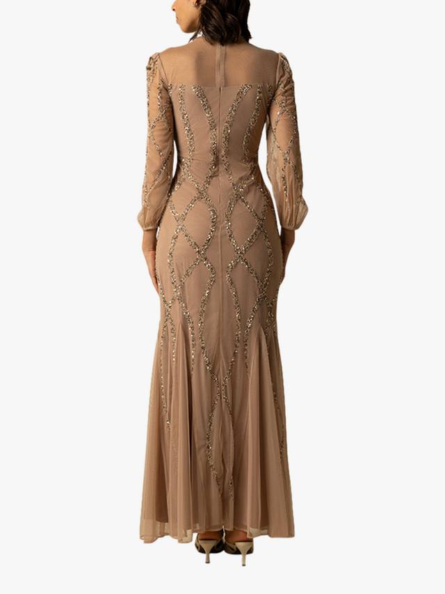 Представляем платье Fiona Gown – творение, в котором сочетаются изящество и гламур. Украшенное замысловатым узором из бусин, оно создает классический и одновременно пленительный силуэт. Приглушенный румянец добавляет нотку мягкости, идеально подходящий для элегантных вечеров и свадебных торжеств. Платье Fiona Gown – ваш выбор для создания образа, столь же незабываемого, как и сами моменты, когда вы его надеваете.